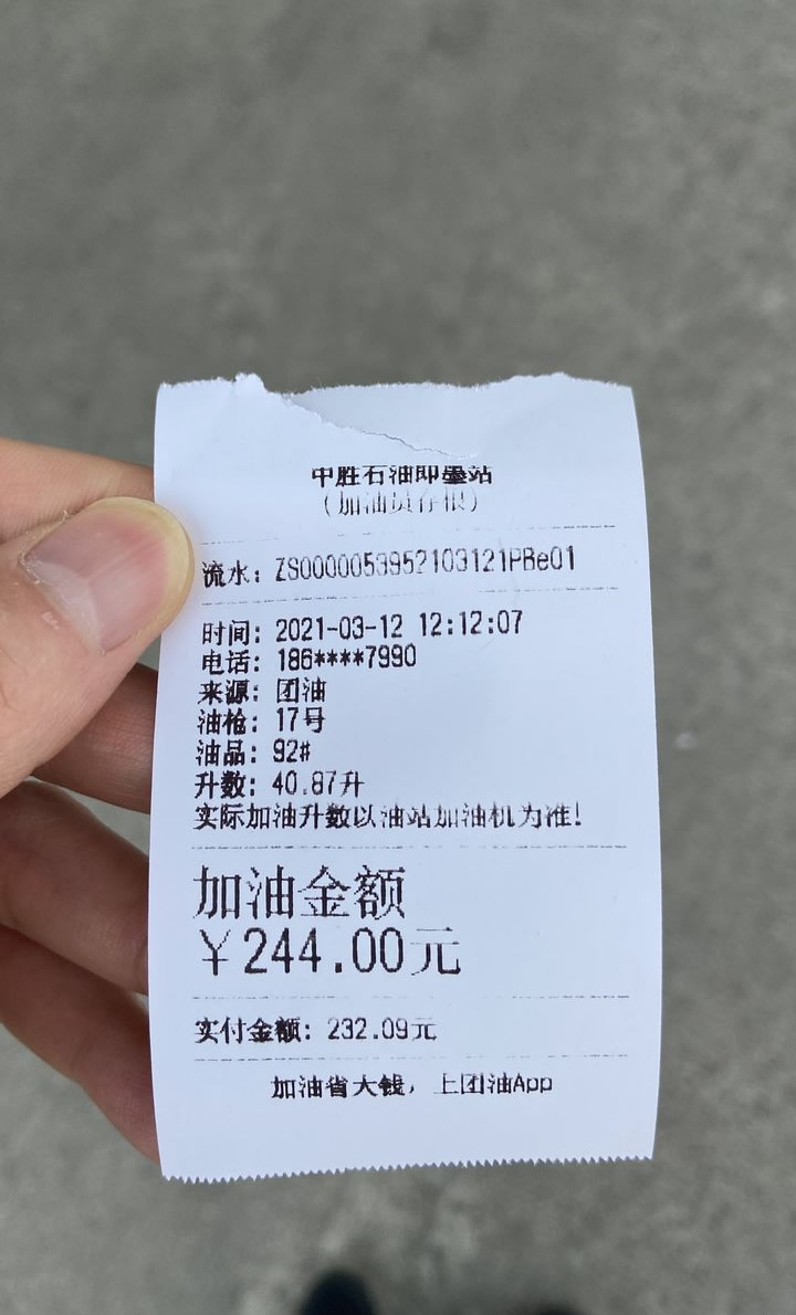 團(tuán)油app里面顯示加油4.29元一升,加了40.87升以后實(shí)付款是232.09元 合5.67元一升!!團(tuán)油app的優(yōu)惠真是雷聲大,雨點(diǎn)小,你們這個(gè)團(tuán)油app是虛假宣傳?還是騙子?請(qǐng)團(tuán)油APP的工作人員出來(lái)給解釋一下!