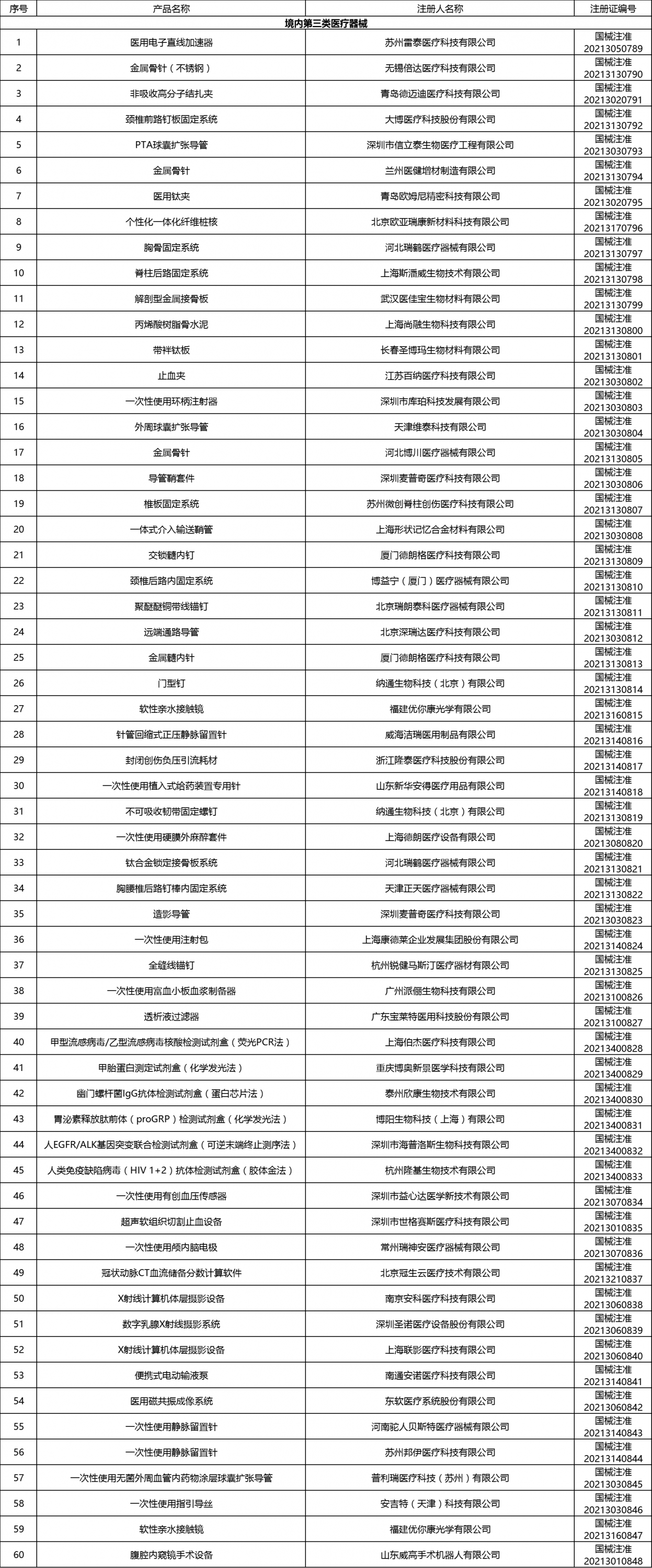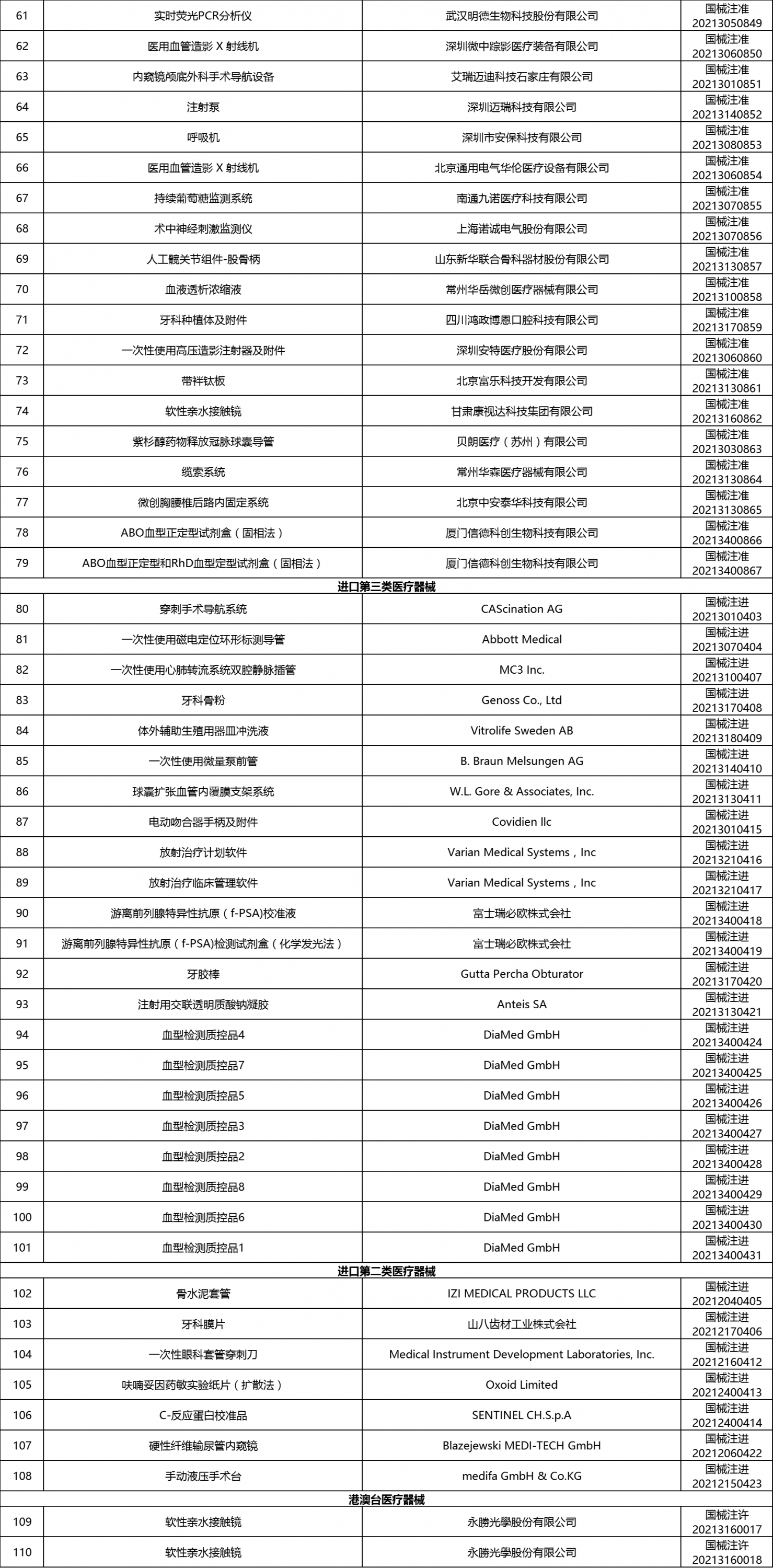 11月15日,國家藥監局發布公告稱,2021年10月國家藥品監督管理局共批準注冊醫療器械產品110個。其中,境內第三類醫療器械產品79個,進口第三類醫療器械產品22個,進口第二類醫療器械產品7個,港澳臺醫療器械產品2個。