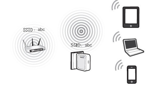 中繼模式下,副路由器通過無線連接主路由器,增強無線信號,擴大WiFi覆蓋范圍。副路由器所帶設(shè)備由主路由器分配IP,兩個路由器屬于同一個局域網(wǎng)。副路由器的無線信號的名稱和主路由器的無線信號名稱一致,密碼也相同。無線設(shè)備在主、副路由器之間漫游方便。