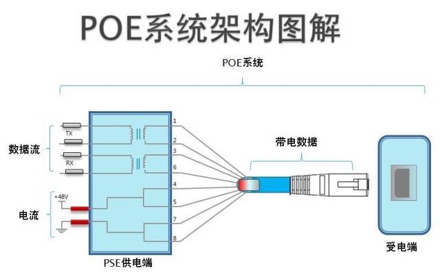 POE(Power Over Ethernet)是有源以太網供電的簡稱,指的是在現有的以太網Cat.5布線基礎架構不作任何改動的情況下,在為一些基于IP的終端(如IP電話機、無線局域網接入點AP、網絡攝像機等)傳輸數據信號的同時,還能為此類設備提供直流供電的技術。POE技術能在確保現有結構化布線安全的同時保證現有網絡的正常運作,最大限度地降低成本。