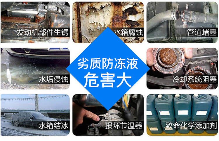 首先,防凍液不含水堿,長期使用不會(huì)造成水道堵塞;