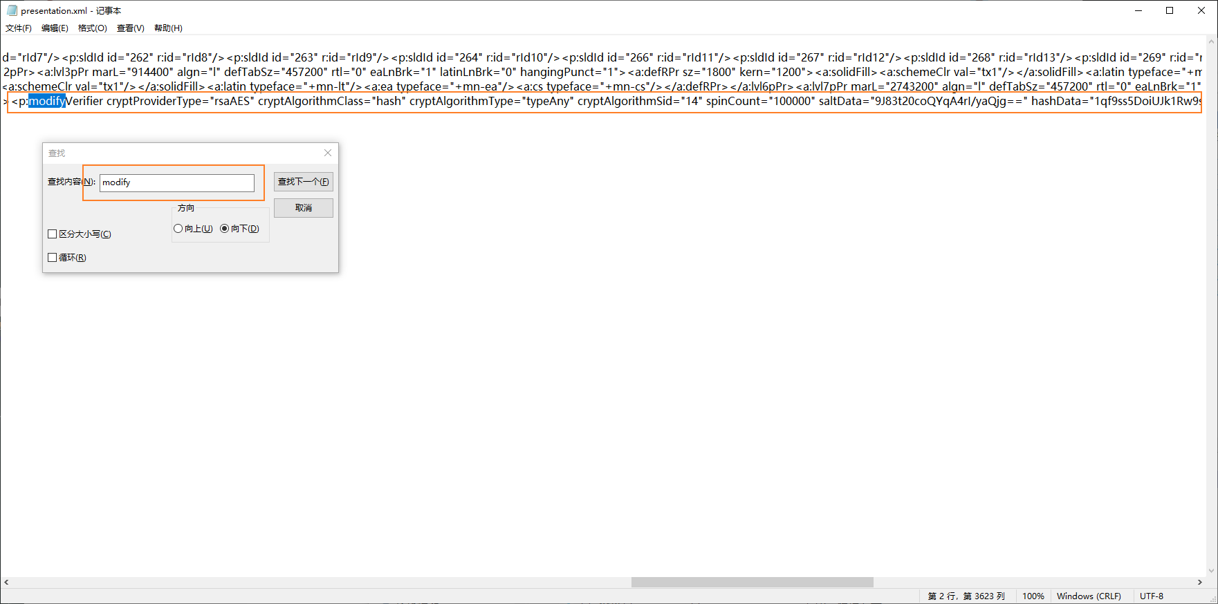 ②打開并解壓到一個文件夾,用記事本打開presentation.xml文件