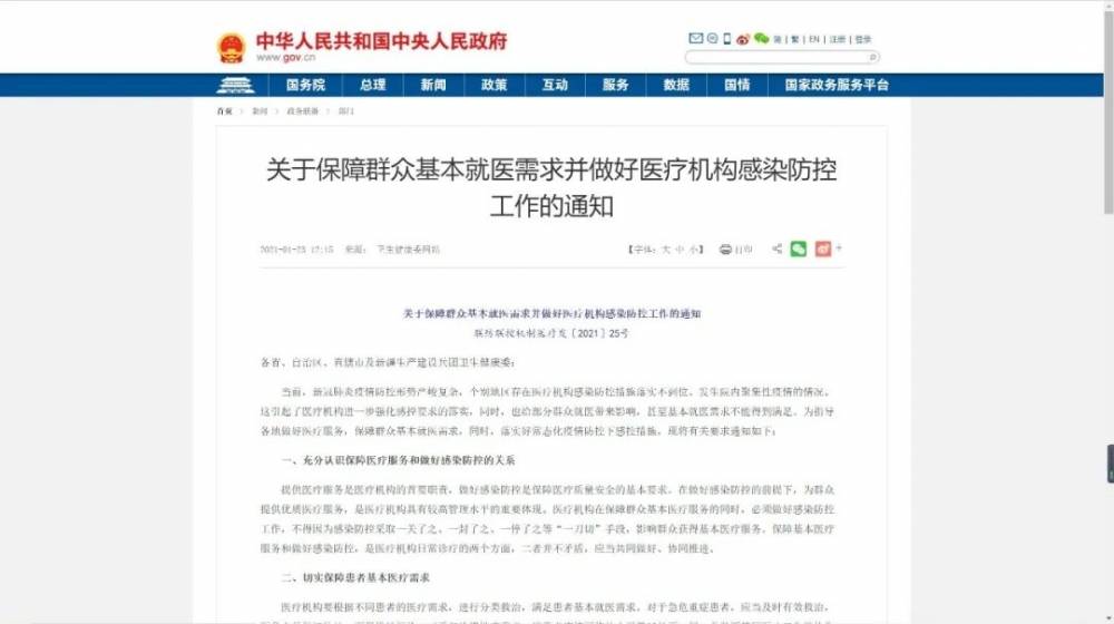 2021年1月,國家衛健委印發的《關于保障群眾基本就醫需求并做好醫療機構感染防控工作的通知》中就強調,“不得因為感染防控采取一關了之、一封了之、一停了之等‘一刀切’手段,影響群眾獲得基本醫療服務。對于急危重癥患者,應當及時有效救治,醫務人員做好防護,不得推諉拒診”。