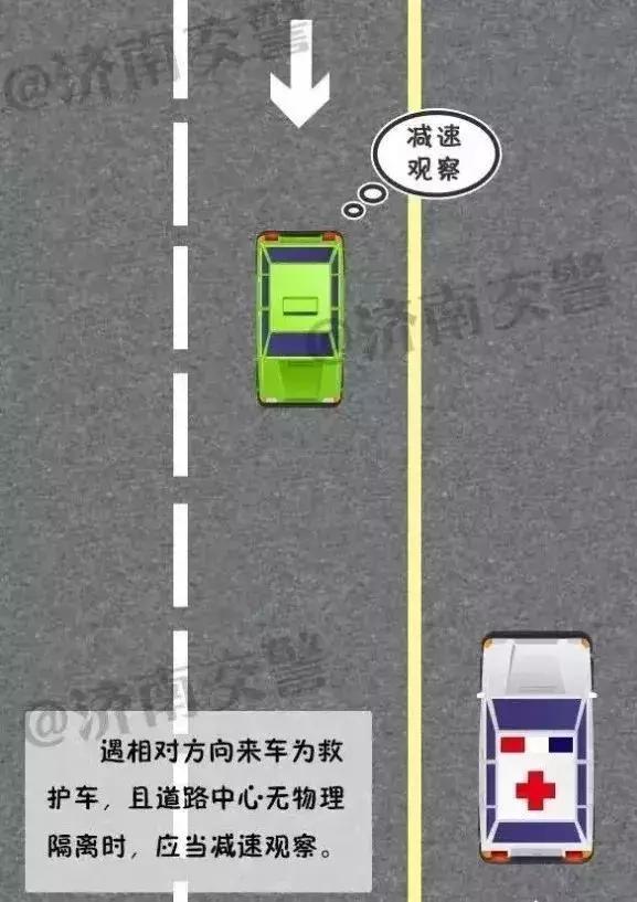 1、遇相對(duì)方向來(lái)車為急救車,且道路中心無(wú)物理隔離時(shí),應(yīng)當(dāng)減速觀察。如急救車要左轉(zhuǎn)彎或借自己所在車道通行,應(yīng)停車讓急救車先行。