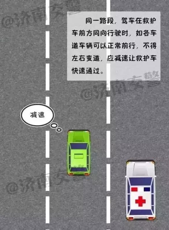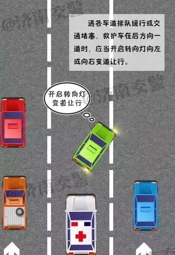 2、同一路段,駕車在急救車前方同向行駛時(shí),如各車道車輛可以正常前行,不得左右變道,應(yīng)減速讓急救車快速通過(guò);如遇各車道排隊(duì)緩行或交通擁堵,急救車在后方同一車道時(shí),應(yīng)當(dāng)開啟轉(zhuǎn)向燈向左或向右變道讓行。