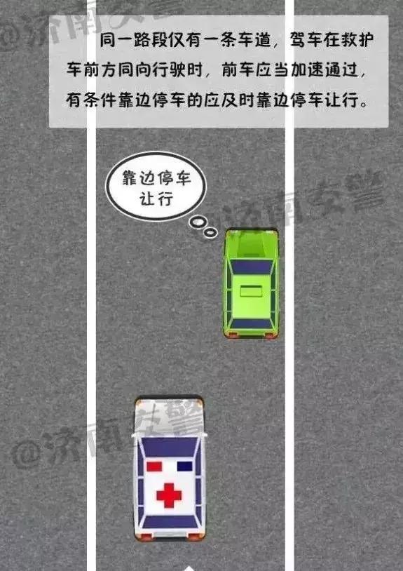 3、同一路段只有一條車道,駕車在急救車前方同向行駛時(shí),前方應(yīng)當(dāng)加速通過(guò),有條件靠邊停車的應(yīng)及時(shí)靠邊停車讓行。有應(yīng)急車道的,不得在應(yīng)急車道上行駛。