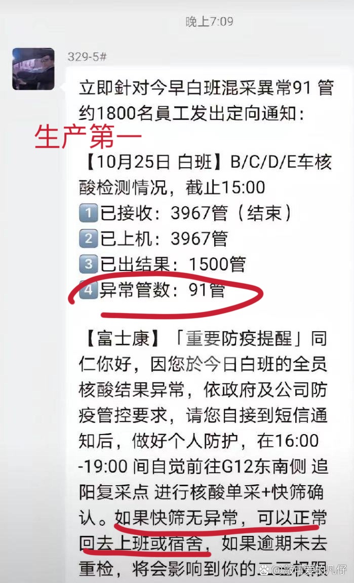 為了激勵員工上班,保證產量不大幅下降,對于全勤人員,富士康實行激勵政策,每人每天會獎勵50元,疫情結束后,統一發放。那對于未出勤人員呢,不上班沒有防疫物資,也沒有飯可以領,這些問題都需要自行解決。核酸需要每日一做,就算是不上班,也要冒著被感染的風險,人擠人和別人一起去廠區去做。所以對大多數人來說,他們想要不餓著亦或者吃到免費的餐食,也想避免做不上核酸,上班是最佳出路,包括混陽密接人員,至此風險性永遠也不會降低。