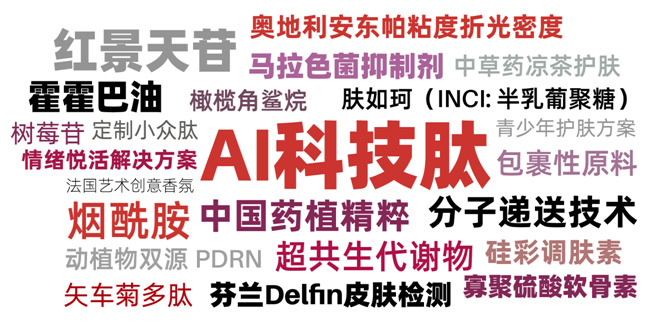 熱點聚焦:基礎研究、應用研究、配方開發、安全及功效評估、防曬美白、保濕抗衰、修復舒緩、合成生物、頭皮與毛發護理、法規檢測安評、再生醫學、線粒體功能、表觀遺傳科學、皮膚免疫、微生物組、AI創新