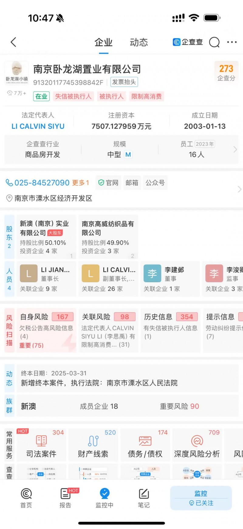 ?不僅如此,南京臥龍湖置業(yè)有限公司實控人李建平(美國籍)被指威脅知情人,試圖掩蓋公司的種種不良行為。目前,該公司深陷經(jīng)營風(fēng)波,涉及多達(dá) 304 場訴訟。其開發(fā)的樓盤存在爛尾情況,眾多業(yè)主翹首以盼的交付日期遙遙無期;此外,還被指挪用業(yè)主物業(yè)費,對眾多債權(quán)人的款項分文不還,其中包括幾十個員工的工資以及數(shù)億元供應(yīng)商款項,企業(yè)信譽(yù)嚴(yán)重受損。