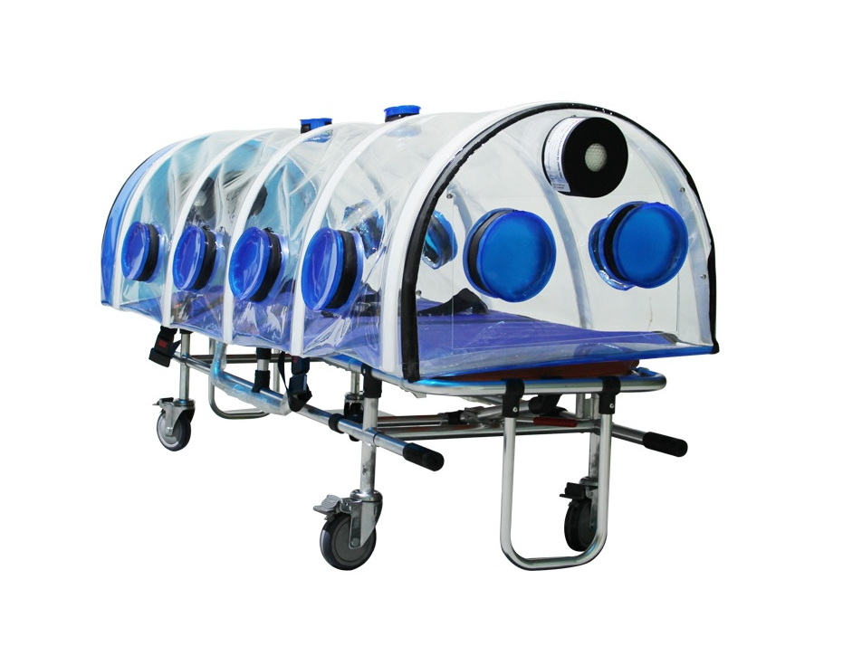 負壓隔離艙的用途:負壓隔離擔架是急救擔架與傳染病員隔離艙的整合體,它們的有機結合實現了多功能用途。