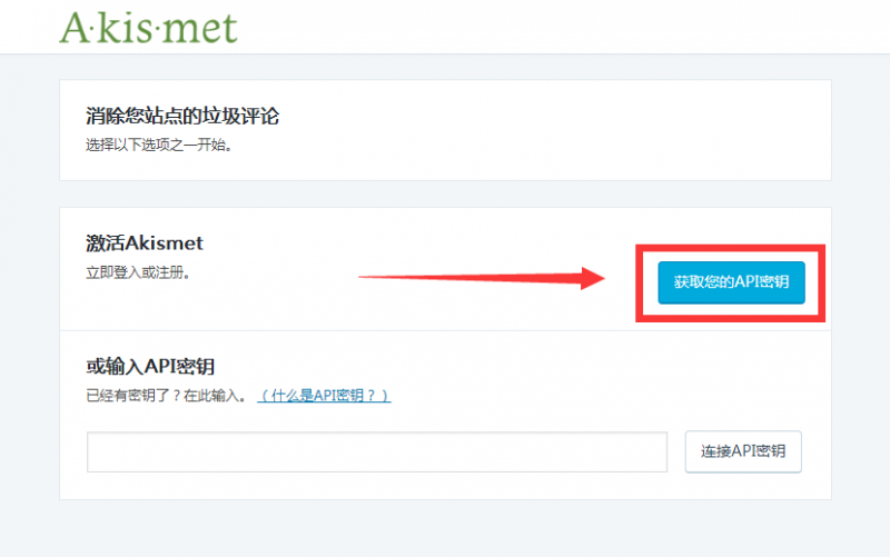點擊--【獲取您的API密碼】,創建“Akismet”帳號;