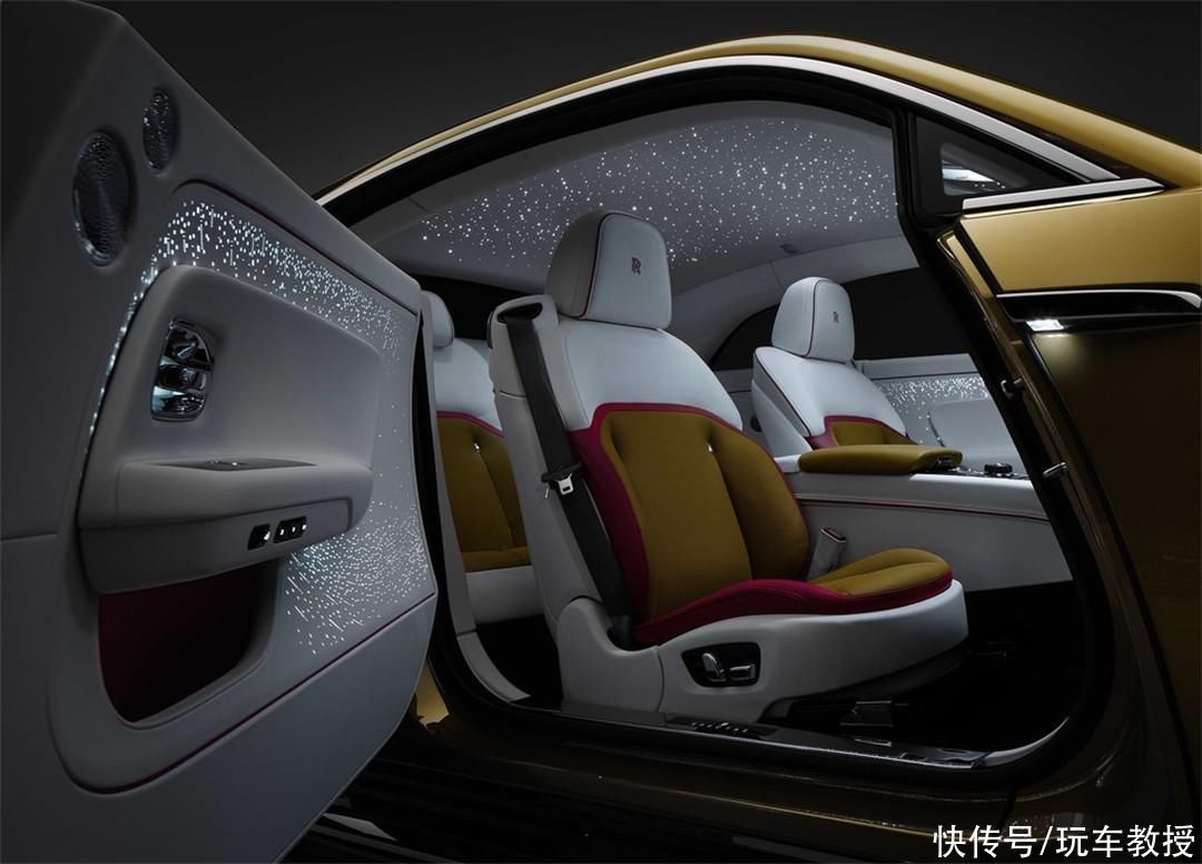 最新一代的勞斯萊斯在副駕中控臺前提供了由5500顆星星點亮的面板,當然你也可以把自己想放的東西鑲嵌到里面。著名的星空頂如今已經(jīng)升級成了4796顆燈珠的流星頂,閃靈還是首次采用星光車門的勞斯萊斯。