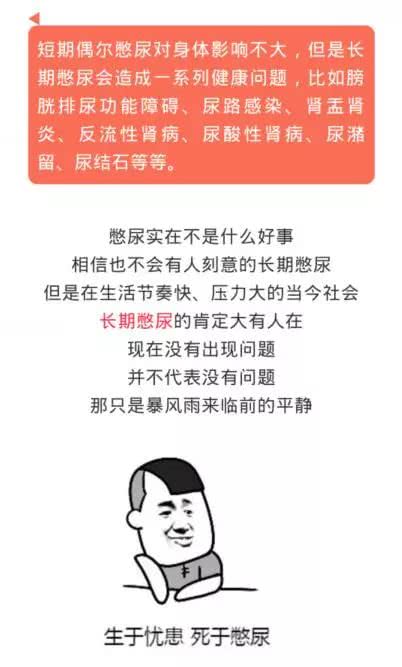 憋尿時間長,只能說明兩點:1、膀胱比一般人更大;2、對尿意的感受能力不強。
