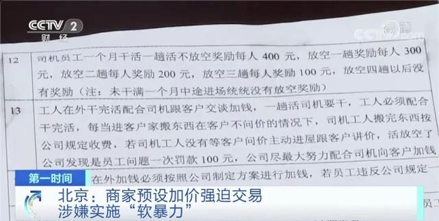 在調查中執法人員發現,北京四方兄弟搬家公司利用可能產生的不確定費用預先制定了員工加價的公司規章制度,同時,為規避責任,和員工簽訂的都是僅為一天有效期的雇傭協議。