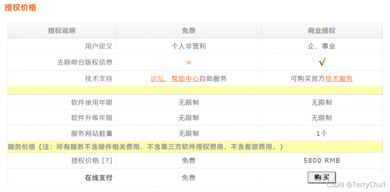 織夢在其官網上公布了收費明細,商業授權5800元,織夢強調,除『個人非營利網站』外,其他網站需購買 DedeCMS 使用授權,例如:政府單位、教育機構、協會團體、企業、以營利為目的的站點,并且僅能使用一個網站。獲得授權的站點,在同一大版本范圍內享受免費升級。如需升級到同一大版本范圍內的不同級別授權,按最新官方授權報價補足差價即可。