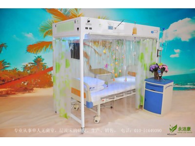 層流床(移動層流消毒罩)功效:可充分降低易感人群的感染率,保護易感人群。廣泛應用于血液科、腫瘤科、兒科、燒傷科等。可以在有人情況下進行室內空氣消毒,是理想的病床局部空氣凈化消毒裝置。移動層流消毒罩由高效空氣過濾系統、風機動力系統、消音降噪系統、操作控制系統等組成。
