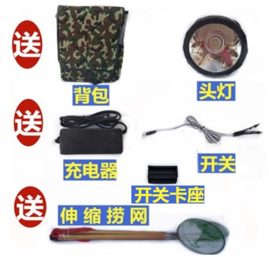 隨機配送:伸縮撈網(wǎng)一套 精致背包一個 LED頭燈一個 防水開關(guān)一個 開關(guān)卡座一個 說明書及保修卡