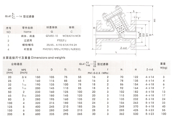襯氟過濾器型號規格