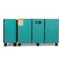 有機廢氣及惡臭利用排風設備輸入到光解式廢氣凈化裝置后,UV光解廢氣凈化設備運用高能UV紫外線光束及臭氧對有機廢氣進行協同分解氧化反應,使有機廢氣物質其降解轉化成低分子化合物、水和二氧化碳,再通過排風管道排出室外。