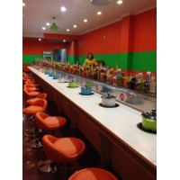 內部采用白色防摩尼龍墊條,旋轉吧臺,壽司料理,旋轉火鍋,自助火鍋餐廳。