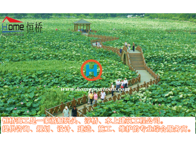 近年來經濟的發展帶動人類的新需求,浮橋幾乎沒有被用于渡水工具,而更多的是用于觀光走廊——景觀浮橋。景觀浮橋和普通浮橋有很大的不同,普通浮橋產生浮力的一般是船,將船連在一起然后鋪上木板并打樁固定就成了一座浮橋用于做渡水工具。景觀浮橋比普通浮橋要先進精細的多,景觀浮橋產生浮力的一般是浮箱,浮箱有塑料浮箱和混凝土浮箱之分,浮箱上面鋪的是防腐木面板,為更利于人們游玩觀賞而做的浮橋。