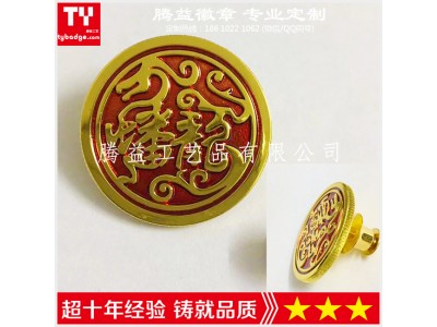 主要工藝有:蝕刻(咬板)、壓沖、注漆(填油)、絲印、滴膠、仿琺瑯、鋅合金壓鑄、柯式印刷等。材料可選用銅、鐵、鋅合金、馬口鐵、亞克力、鋁、鉛錫合金、PVC等材料。