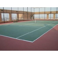 (10)劃線:按標(biāo)準(zhǔn)尺寸量度定位,用帆布線標(biāo)出線條位置,然后而用美紋紙沿帆布線貼在球場上,用劃線專用劃線漆均勻用毛刷刷于兩美紋紙之間,待涂料表面干后把美紋紙撕掉即可。