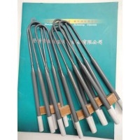 1800度硅鉬棒用于超高溫型試驗爐子,爐內溫度在1700-1800度左右,可選用直徑4/8,5/9或6/12的元件,當然有時候電爐很小的話可用直徑3/6(主要取決于爐子的大小)的。2選用合適規格的硅鉬棒對電爐來說是非常關鍵的,看使用溫度,第二看使用功率,第三是電壓。一般情況下根據爐膛的長度,排布開來,基本上都U型硅鉬棒。有的廠家想升溫快,可以使硅鉬棒的熱端直徑適當的增大減小一毫米,但是安裝電爐硅鉬棒數量就是要有功率以及電壓的來決定,但是又怕電壓達不到可以少幾根也是可以的,排好距離就行,棒與棒之間的距離好是同規格的中心距,合理的根據電爐所需的溫度情況來決定硅鉬棒的直徑。注:使用電爐硅鉬棒必須使用控電柜、一般廠家都會配備相配套的卡具。