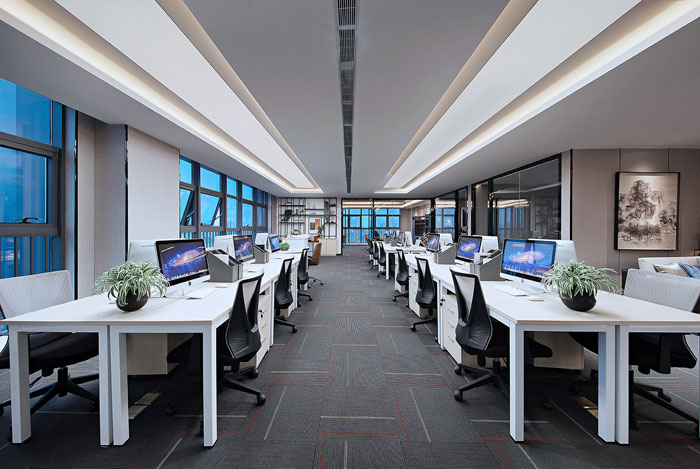 在辦公室裝修設計中,面板燈一般用于無吊頂的辦公室,LED面板燈材料環保、功率小、發光效率、照明亮度都由于格柵燈。LED面板燈可以根據不同的需要和環境變化調節光色,不僅沒有輻射和炫光的產生,而且可以保護視力,光色更為溫和。