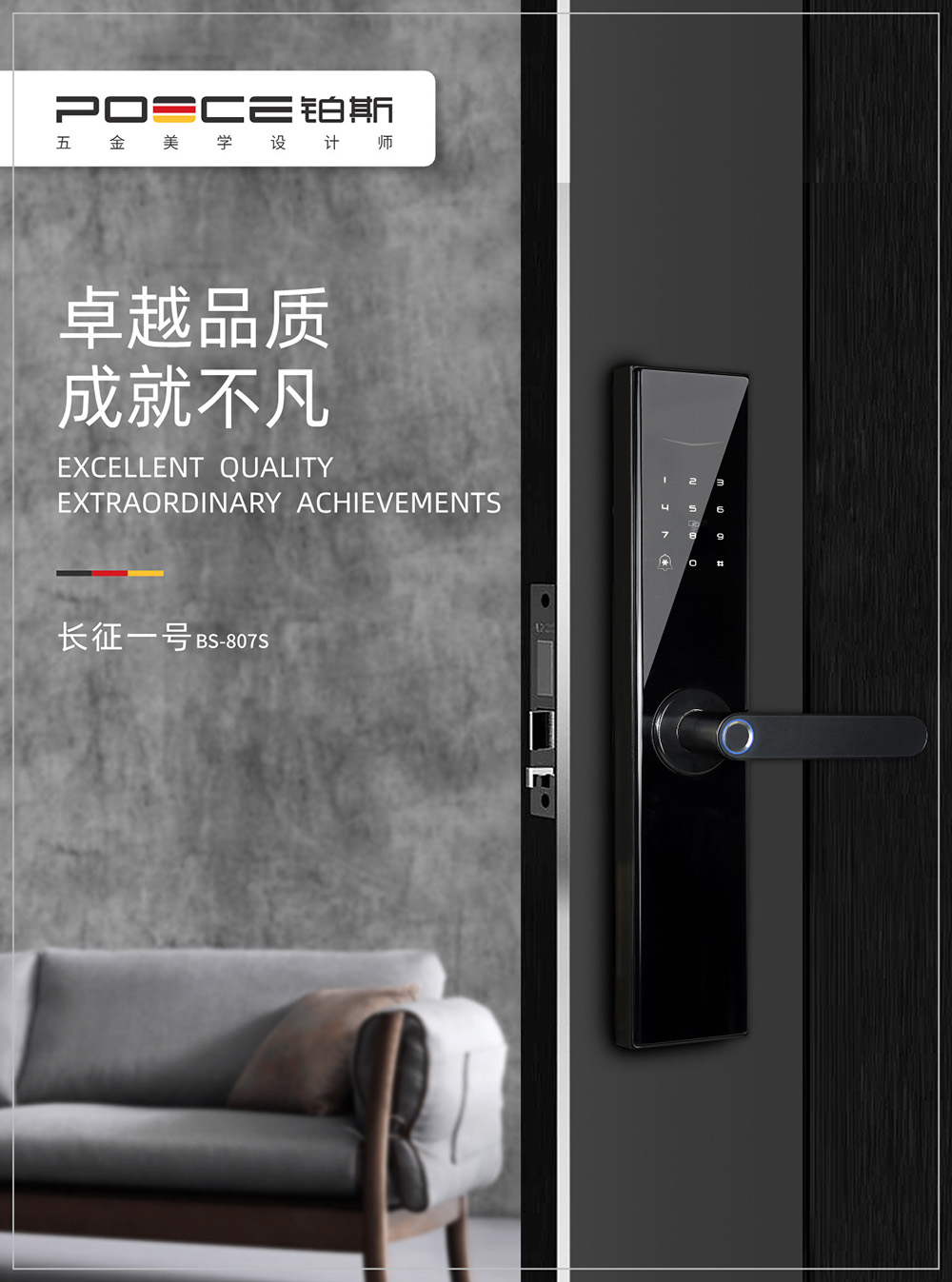 鉑斯長(zhǎng)征一號(hào)BS-807S智能鎖是我公司新一代產(chǎn)品,適用于鐵門(mén),鋼門(mén),木門(mén)