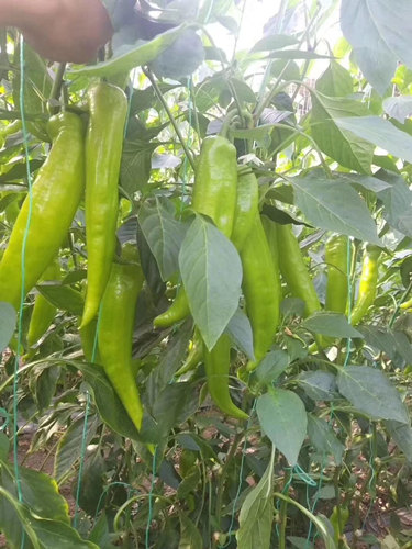 大羊角椒品種,中早熟,果實黃綠色,果實大而順直。