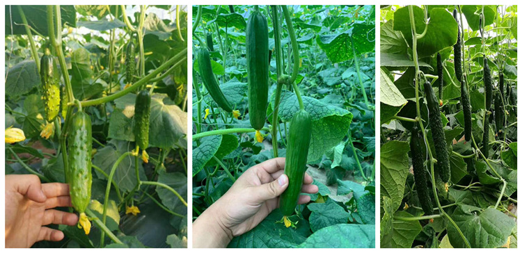 連續(xù)結(jié)瓜能力強(qiáng),返頭能力強(qiáng),不歇秧,產(chǎn)量高,腰瓜長(zhǎng)36cm左右,短把,密刺,顏色均勻,油亮型.瓜條順直.