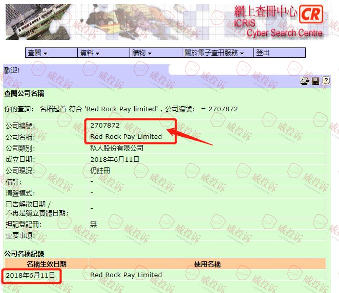 下圖是 Red Rock Pay 在香港海關(guān)的注冊記錄,MSO牌照號碼為 18-11-02612.