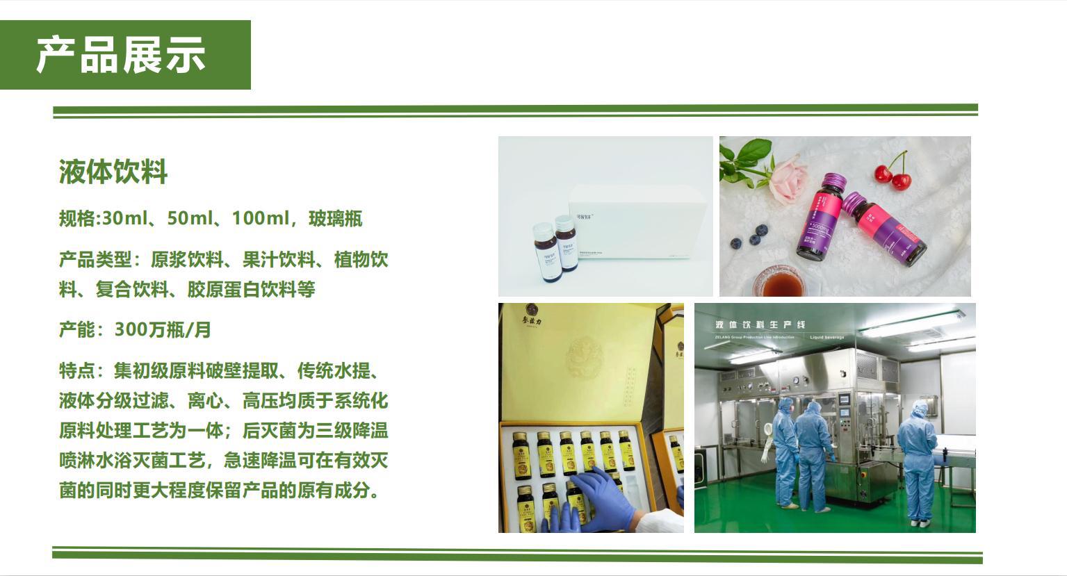 (1)客戶自帶品牌,提供配方與標準,并提供原料、包裝材料,加工成客戶需要的產品形式:口服飲液、飲料、粉劑等;(2)客戶自帶品牌并提供原料與包裝材料,其余由我方提供(如配方、產品加工等);