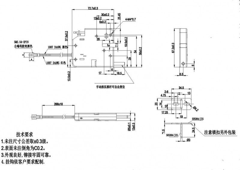 3.此款鎖可定制增加信號檢測,主要用于檢測箱門的狀態,開門時為常開,關門時為常閉;