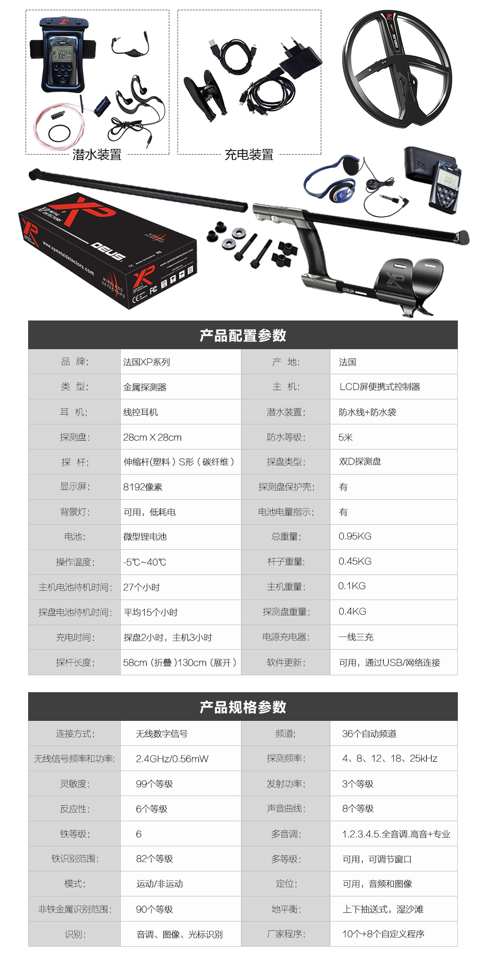 XP 地下金屬探測器是通過全球先進(jìn)技術(shù)打造出來的強(qiáng)大、快速、輕便、簡潔的可控式數(shù)字探測器。機(jī)器自帶入門級模式以及專家模式。不管您是初學(xué)的探寶愛好者還是經(jīng)驗(yàn)十足的探寶愛好者,XP地下金屬探測器會(huì)讓您自己做決定是否修改機(jī)器上的設(shè)定。強(qiáng)大的廠家預(yù)置程序可以讓大部分的操作者立即開始探寶,而經(jīng)驗(yàn)十足的專業(yè)探寶人可以通過控制器界面選擇更先進(jìn)的參數(shù)設(shè)置。
