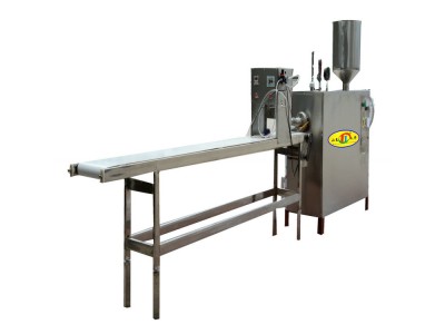 電熱自熟式蝦片機、自動擠棒機改變了以往蝦片機的諸多缺陷,采用電加熱電子自動控溫蒸煮熟化成型新工藝,粉漿在攪龍內經周圍的電熱水浴箱蒸煮,再由螺旋軸揉壓勻質擠出成型,蝦棒熟化度高,成型光滑,且生產過程無煙塵排放,環保無污染。與數控切段機配合使用,實現了長短自控切段,冷卻后再用切片切成薄片后,烘干或晾干即為成品,食用油炸即可,降低了勞動強度,使產品質量得到顯著提高。