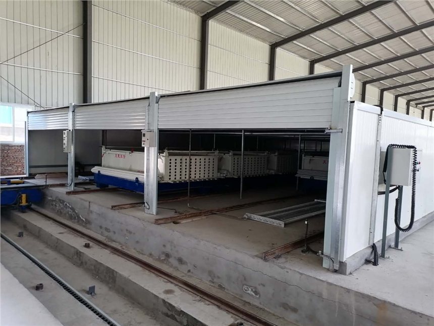 輸送計量→攪拌→注料→穿芯(空心板)→初期養護固化→抽芯→終養護→出板打包→成品進入堆場