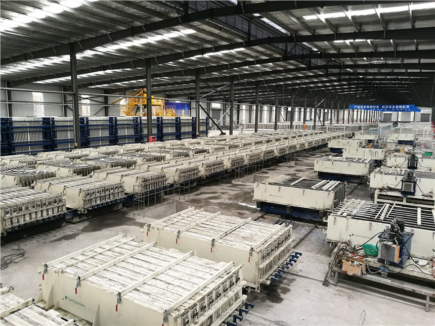 山東天意機(jī)械自主研發(fā)的TYF臥式墻板生產(chǎn)線是生產(chǎn)隔墻板的主要設(shè)備,它主要包括數(shù)控配電室,儲料罐,發(fā)泡攪拌機(jī),電子計量儲料倉,螺旋輸送機(jī),EPS熟化料倉,EPS預(yù)發(fā)機(jī),擺渡車等。自主研發(fā)的大型攪拌設(shè)備配有自動配料系統(tǒng),結(jié)合材料的性能使料漿攪拌更均勻,能夠很好的融合在一起。料漿泵送系統(tǒng)更好的將攪拌好的料漿輸送到設(shè)備里面,澆注模式更簡單方便。發(fā)泡系統(tǒng)采用變頻發(fā)泡技術(shù),提高了發(fā)泡速度,節(jié)省了原材料,墻板成型機(jī)自動行走,產(chǎn)品成型速度高。該生產(chǎn)線自動化程序高,操作簡單,生產(chǎn)效率高年產(chǎn)硅酸鈣板聚苯顆粒復(fù)合輕質(zhì)墻板30萬平方米。