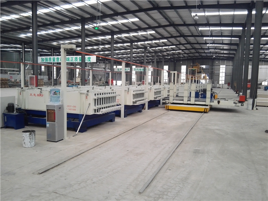 1.液壓開模臥式空芯實(shí)心隔墻板設(shè)備: 該機(jī)型特點(diǎn)可生產(chǎn)各種空心、實(shí)心復(fù)合墻板;可采用主機(jī)固定式移動式流水線生產(chǎn)模式,具有占地少面積少、生產(chǎn)效率提高,采用自動控溫(電、水、汽)加熱養(yǎng)護(hù)系統(tǒng)。