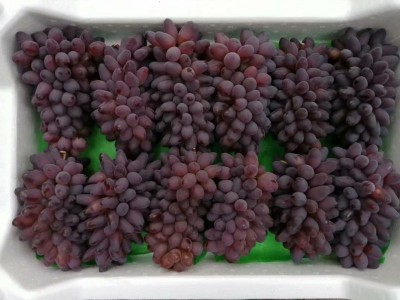 雌性花,無核,抗寒抗病能力強,早產性好。經吉林大藥膨大處理后果穗緊密,果實大小整齊,果實顏色紫紅色,單果重8克。果穗圓筒狀,穗重500-1000克;果皮較韌,耐儲運,果實粉紅色。可溶性固形物含量22% ,有濃厚的茉莉香味,品質好。耐陰雨,成枝好,且產量高、含糖量高,品質好,豐產穩產。適宜大部分地區栽培,在2008年逐漸推廣開。