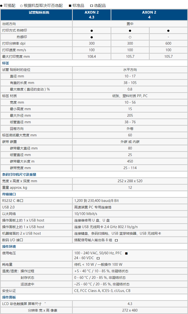 AXON 2 的用途為在自粘性標(biāo)簽上打印二維或一維條碼并在試管上進(jìn)行貼標(biāo)作業(yè)。