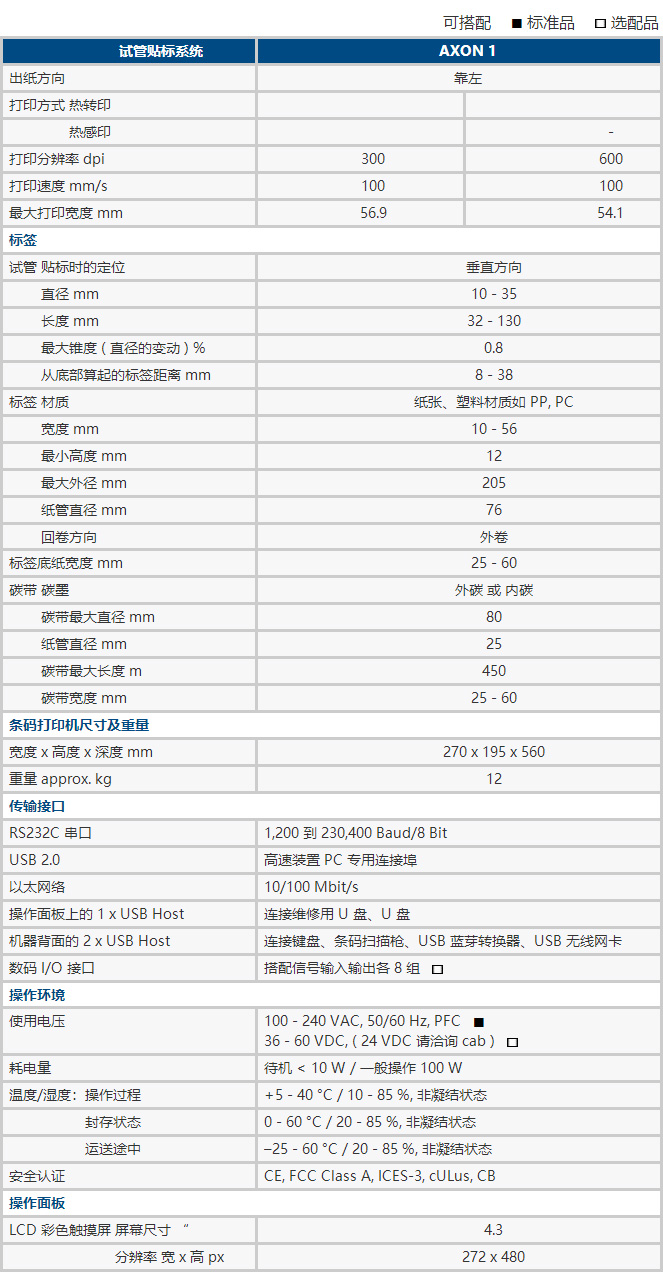 AXON 1 的用途為在自黏性標(biāo)簽上打印二維或一維條碼并在試管上進(jìn)行貼標(biāo)作業(yè)。