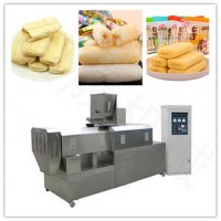 1.夾心米果生產線設備簡介及操作方法:拌粉機的功能是將擠壓膨化所需要的各種原材料通過攪拌達到均質的目的,使用時將各種原材料加入拌粉機中蓋上上蓋開動電機將一定量的水或液體添加劑經上蓋上的加水孔中緩緩加入,攪拌3-5分鐘后達到充分混合的設備。混合均勻后打開倉門將料自動放出備用,放料時可開電動機,以利于快速放空,提高功效。