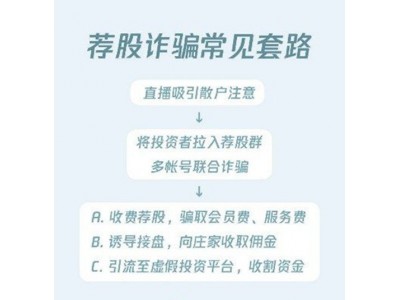 以開課的方式收費(fèi),教廣大的股民炒股。聽著并沒有什么不好,其關(guān)鍵就是股民交了巨額的費(fèi)用給他們,發(fā)現(xiàn)學(xué)到的東西還不如買兩本書。這樣的方式更隱蔽一些,很多股民覺得是自己的操作問題,老師講的并沒有錯!也正是這種心理,才讓他們有機(jī)可騙!