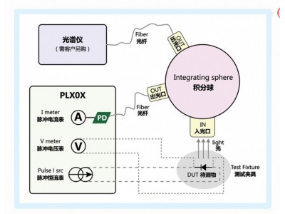 窄脈沖LIV測試系統(tǒng)構(gòu)成圖如下所示:PL系列脈沖源、測試夾具、積分球、光纖、光譜儀等組成,光譜儀需要客戶根據(jù)自己的選擇另購。