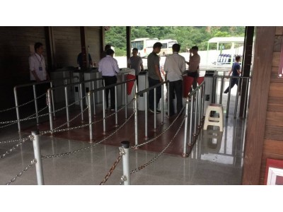 游客離開館區時,同樣需要在出口檢票通道上的門票識別處驗票,有效票閘機開閘,游客通行過閘,閘***閉。游客出閘后,出閘數據上傳客流控制系統。