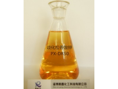 歧化松香酸鉀酯是淄博鵬鑫化工科技有限公司自主研發的產品,執行企業標準。本產品采用太陽能供熱低溫反應工藝技術,松香歧化反應后與醇和羧酸發生酯化反應生成的產物,歧化松香酸鉀酯在50%有效含量時保持琥珀色透明度很高的油狀液體,通過酯化反應消除共軛雙鍵體系,提高合成橡膠和樹脂聚合速率,有效的降低成本并減少環境污染。本產品主要是作為乳化劑參與到丁苯、氯丁、丁腈、高苯等合成橡膠和ABS合成樹脂中乳液聚合乳化反應中,在聚合反應中使用乳化劑分散在水中的單體顆粒呈穩定的膠體系統。