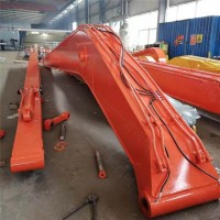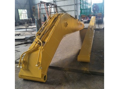 加長臂分為二段式、三段式、四段式,二段式主要適用于土砂、混凝土等建筑搬運、高速公路坡面修整及河道疏通清淤及建筑基礎(chǔ)、河道、深溝等土石方挖掘作業(yè)等;三段式、四段式主要適用于高層建筑樓體的拆解等作業(yè)等。主要的是:要根據(jù)加長臂重量的需要,適當(dāng)加重機(jī)器后部配重塊的配重重量,以保持前后平衡。避免挖掘機(jī)工作中出現(xiàn)事故