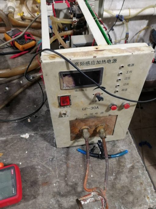 2、過流,過流的原因有很多,需要慢慢排除,如果是不小心碰到感應(yīng)圈過流,則不需要維修,關(guān)機(jī)重新開機(jī)即可,感應(yīng)圈短路這些客戶可以自行處理,如果是一開機(jī)過流,有可能是設(shè)備內(nèi)部故障,內(nèi)部故障包含小功率不過流,大功率過流(在原始廠家匹配情況下,不存在私自更改感應(yīng)器及工件),工作一會(huì)兒過流,有可能是變壓器磁芯斷裂,也有可能是主板某元件發(fā)熱引起過流。開機(jī)聽到啪的一聲過流,則是有可能諧振電容及變壓器打火造成,這些故障由廠家解決。